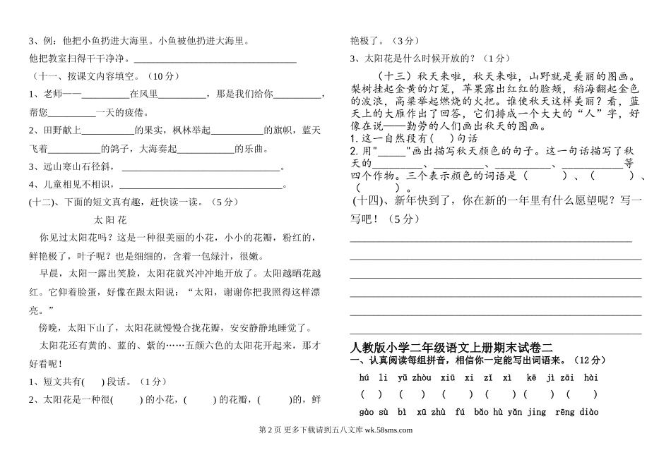 小学二年级上册语文期末试卷6套.doc_第2页