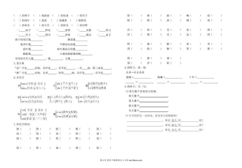 二年级语文下册第一单元期末基础知识复习题及答案.doc_第3页