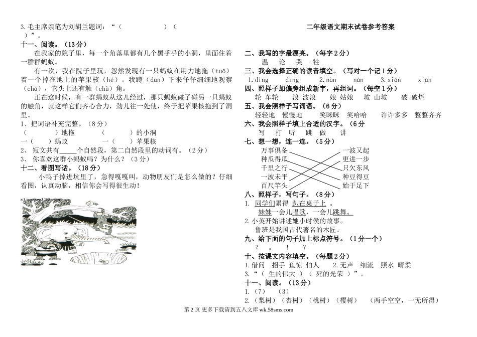 语文S版二年级下册语文期末试卷及答案.doc_第2页