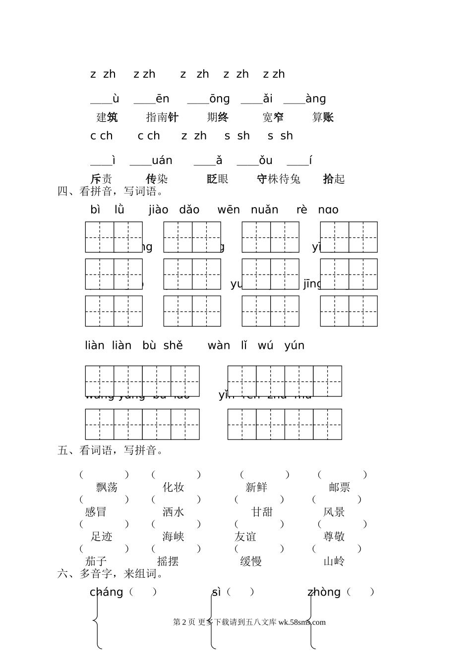 2021年部编版二年级语文下册字音字形专项练习题及答案.doc_第2页