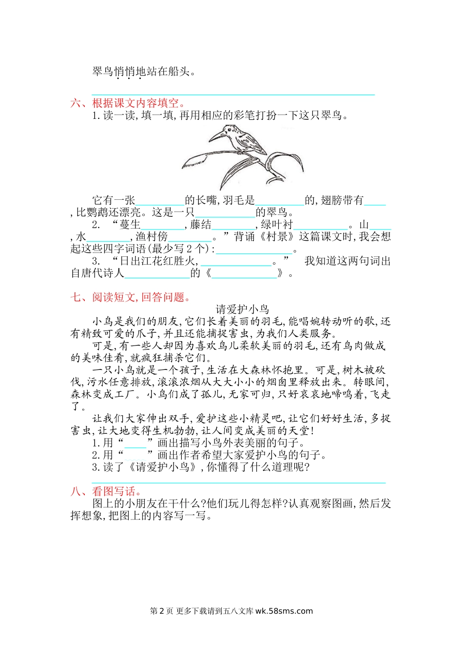 2016年冀教版二年级语文上册第三单元提升练习题及答案.doc_第2页
