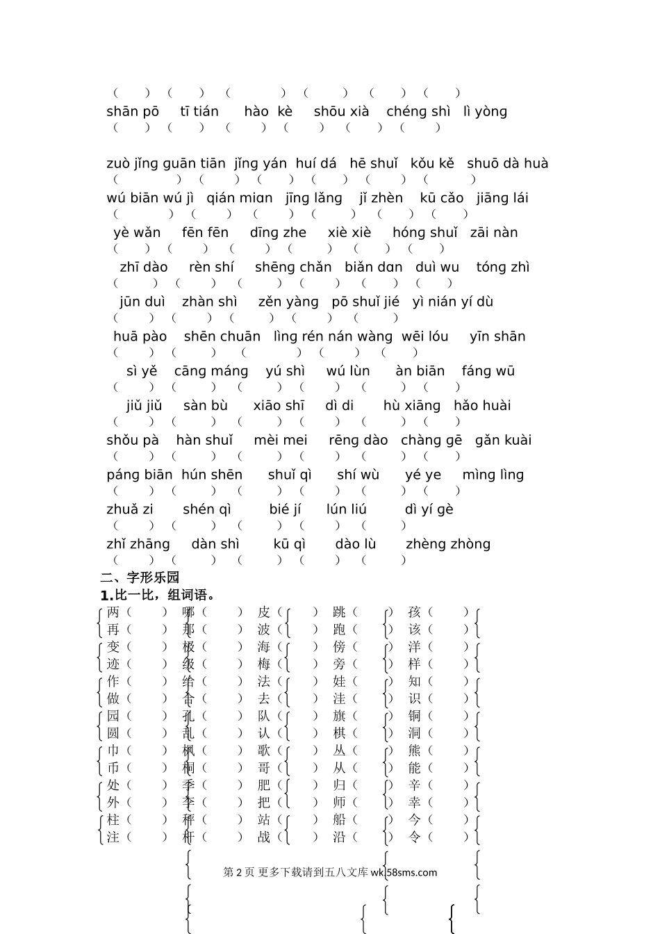 2021年二年级语文上册1生字专项练习题及答案.doc_第2页