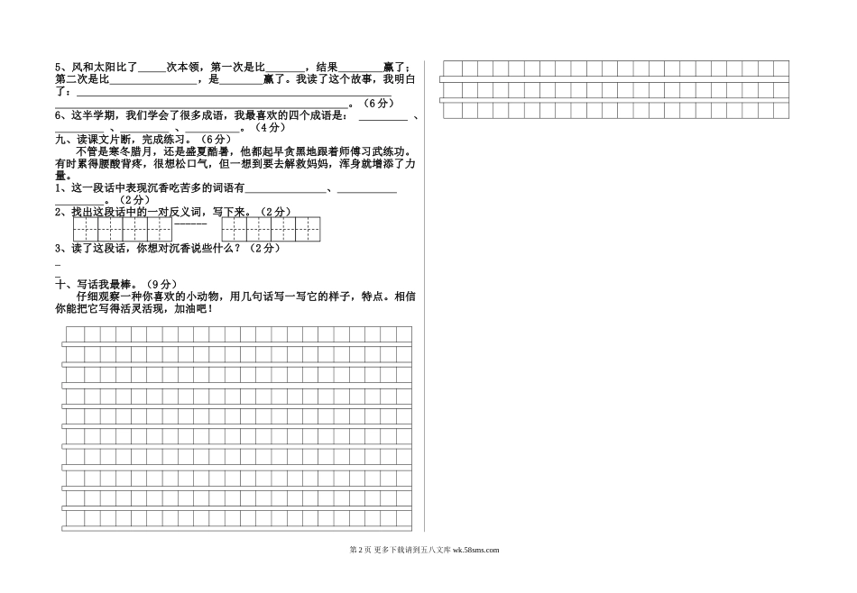 官渡区春季学期苏教版二年级语文下册期中试卷.doc_第2页