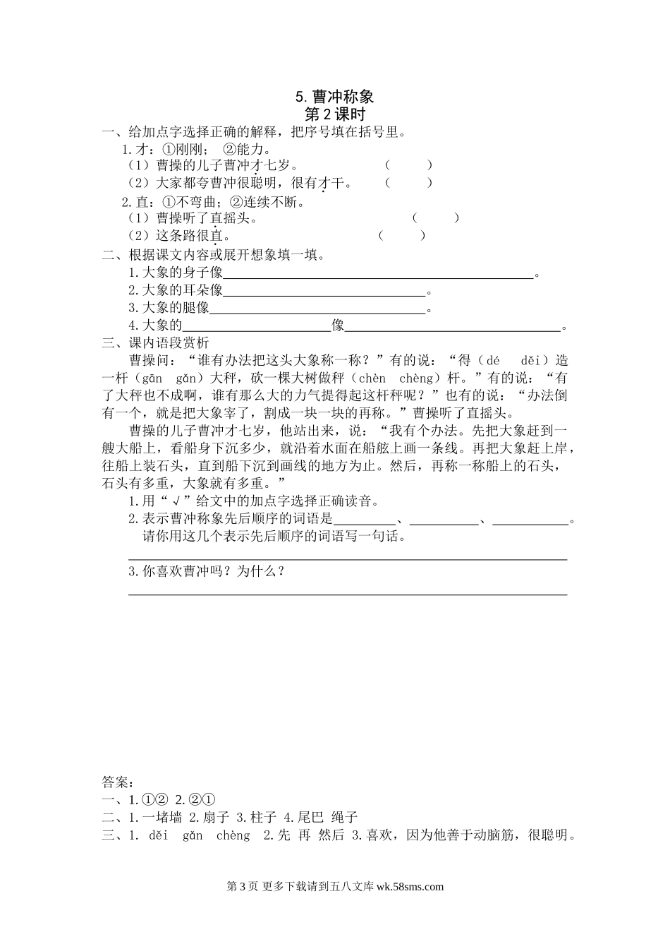 二年级语文5《曹冲称象》课时练.doc_第3页