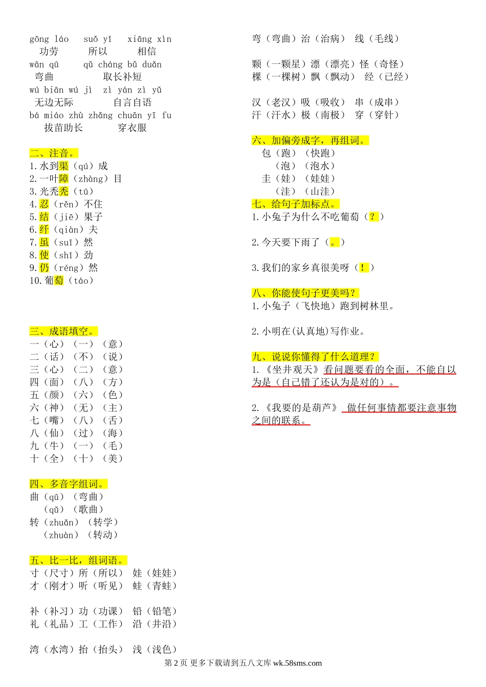二年级语文上册第4单元复习题及答案.doc_第2页
