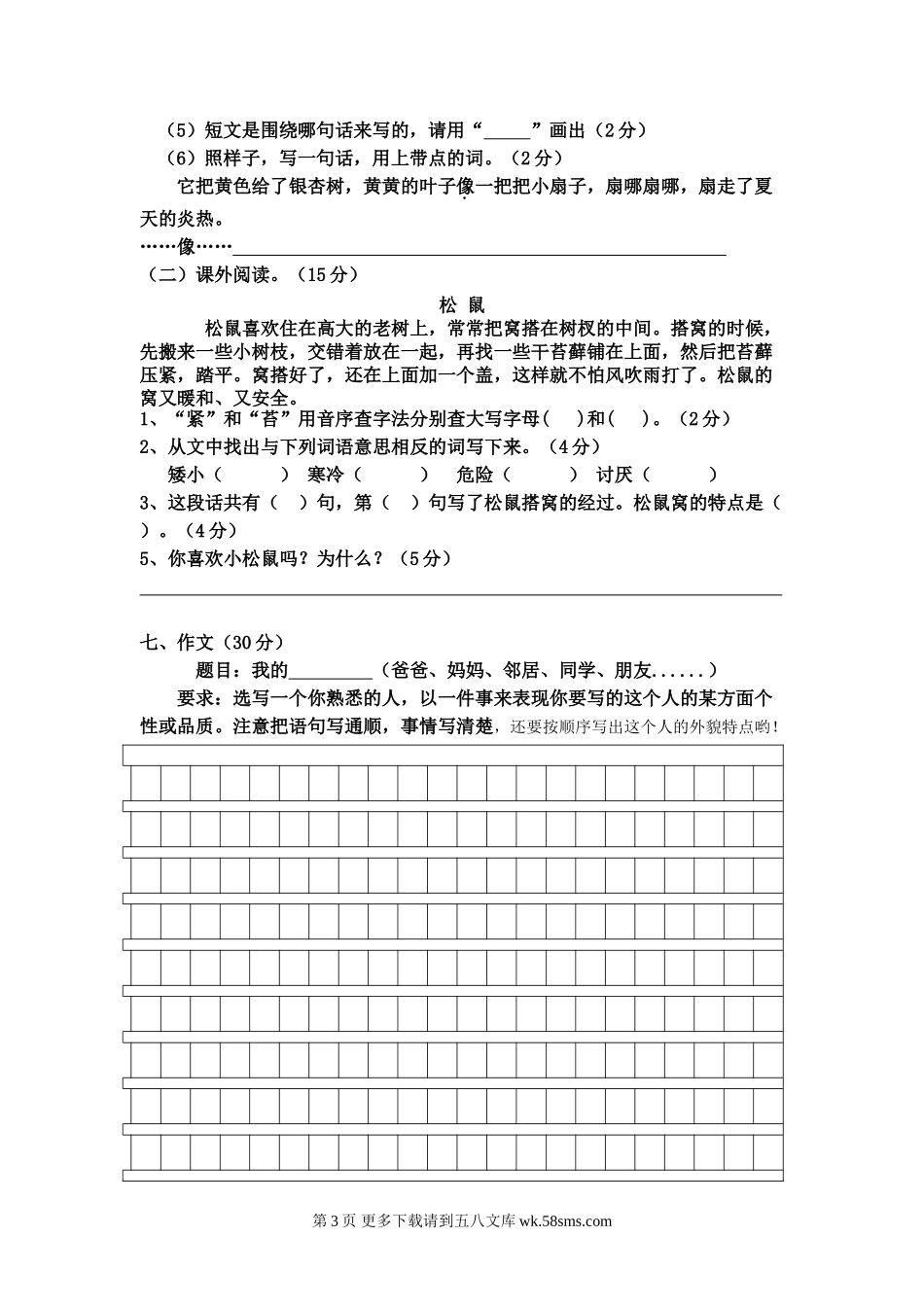 三年级语文第一学期期中综合知识竞赛.doc_第3页