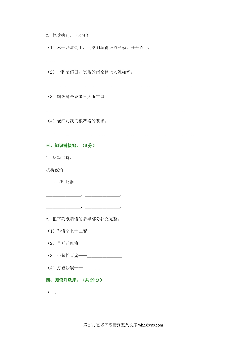 三年级语文上册第五单元测试题及答案.doc_第2页