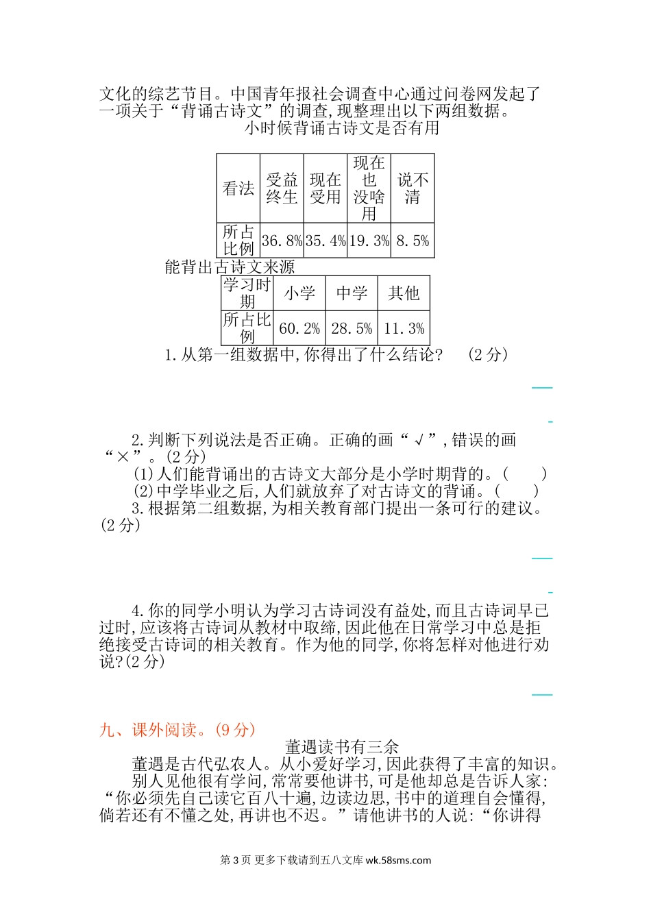 2021年部编版四年级语文下册第七单元测试题及答案.doc_第3页