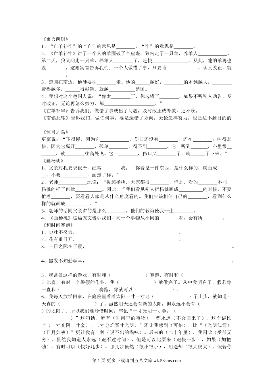 《寓言两则》1、“亡羊补牢”的“亡”的意思是________,“牢”的意思是________。2、《亡羊补牢》讲了一个人的羊圈破了个窟窿,狼叼走了一只羊,养羊人____________。第二天,狼又叼走一只羊,养羊人________了...