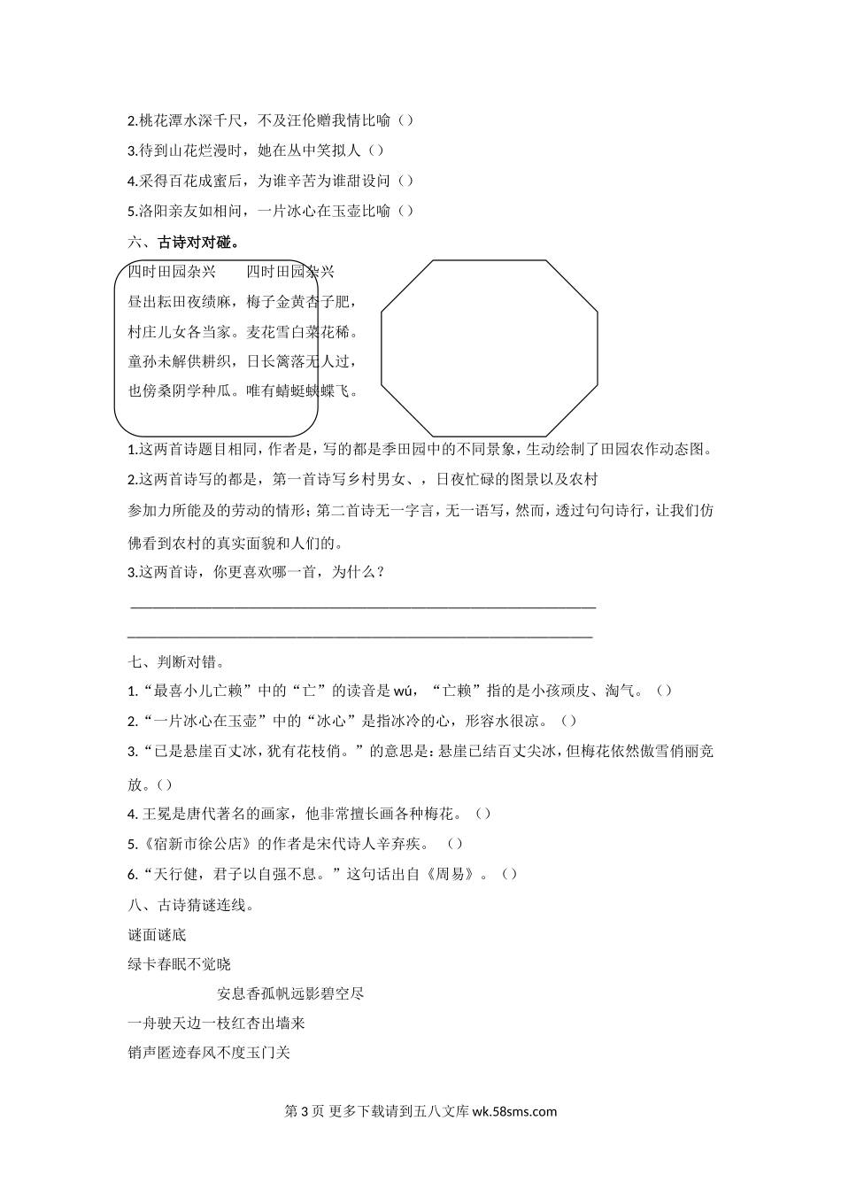 2021年部编版四年级语文下册专题8 古诗专项练习题及答案.doc_第3页