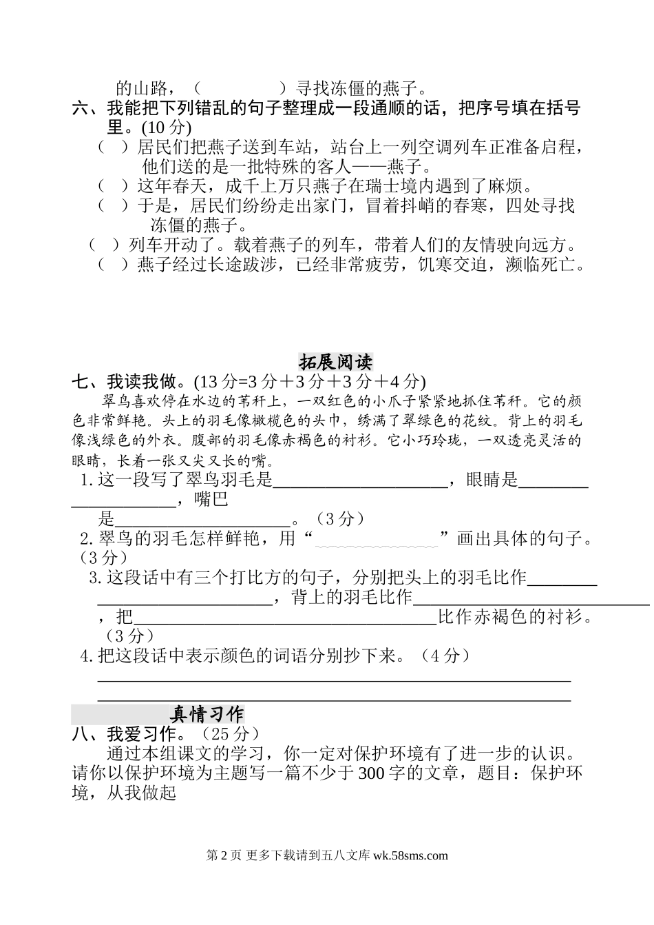 2015年春季三年级语文下册第二单元调研卷班级姓名成绩巧练基础一、我读我写。(要求正确、端正、匀称)(10分)cuìniǎosìyǎnɡshūshìzhòujiànɡlímínɡtèshūshíbìjiājùjīhánjiāopò二、我会辨认...