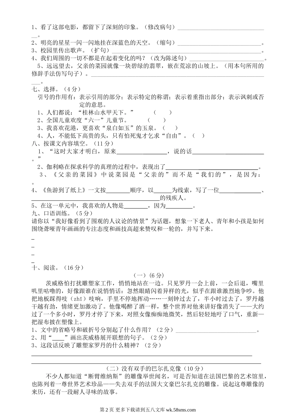 第七单元测试卷一、给下面的句子中加点的字选择合适的拼音,并写在括号内(4分)1、笼(lónglǒng)夜幕降下来了,黑暗笼()罩着大地,连笼()中的小鸟也要睡觉了.2、的(díde)小明的()这句话的()确说错...