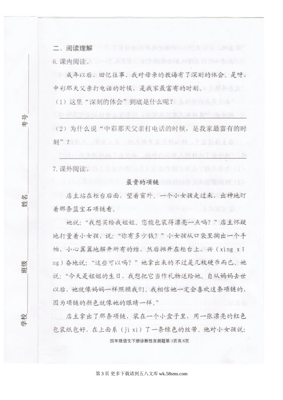 人教版小学语文四年级下册期中试题.doc_第3页