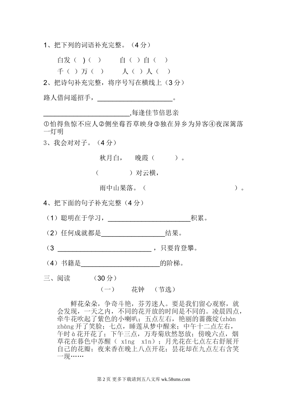 永宁街第一学期三年级语文期中检测卷.doc_第2页