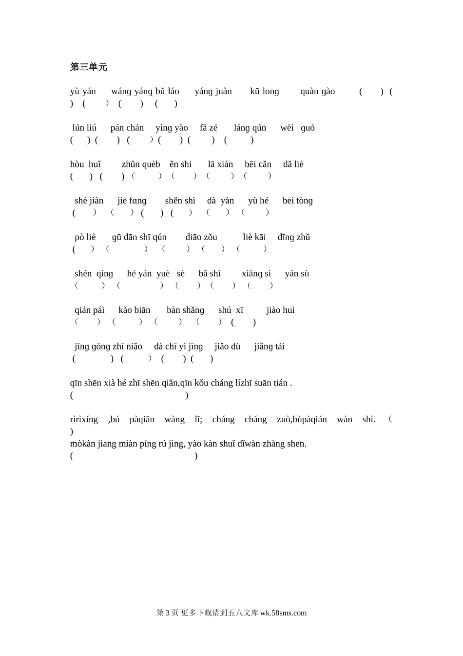 第一单元yànzihuópozēnɡtiānyìquānyīnfú()()()()()wēifēnɡlüèɡuòyǎnzòuzànɡēdàotián()()()()()ɡǎnjíchìbǎnɡjiǎndāojùlǒnɡāiáijǐjǐ()()()()()wūhēióuěrɡuānɡjǐn...