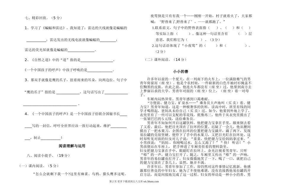 大莫古镇2015-2016学年下学期4月质量跟踪抽测试题四年级语文(时间:120分钟分值:100分制卷:太平哨小学审核:唐刚)题号一二三四五六七八九十总分得分【毛笔书法:大漠孤烟直,长河落日圆。】(5分)基础知识积累...