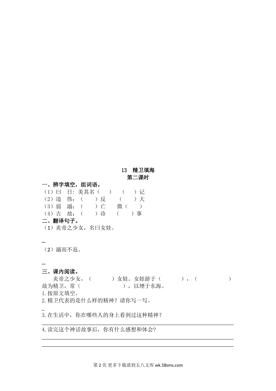 四年级语文13精卫填海课堂练习题及答案.doc_第2页