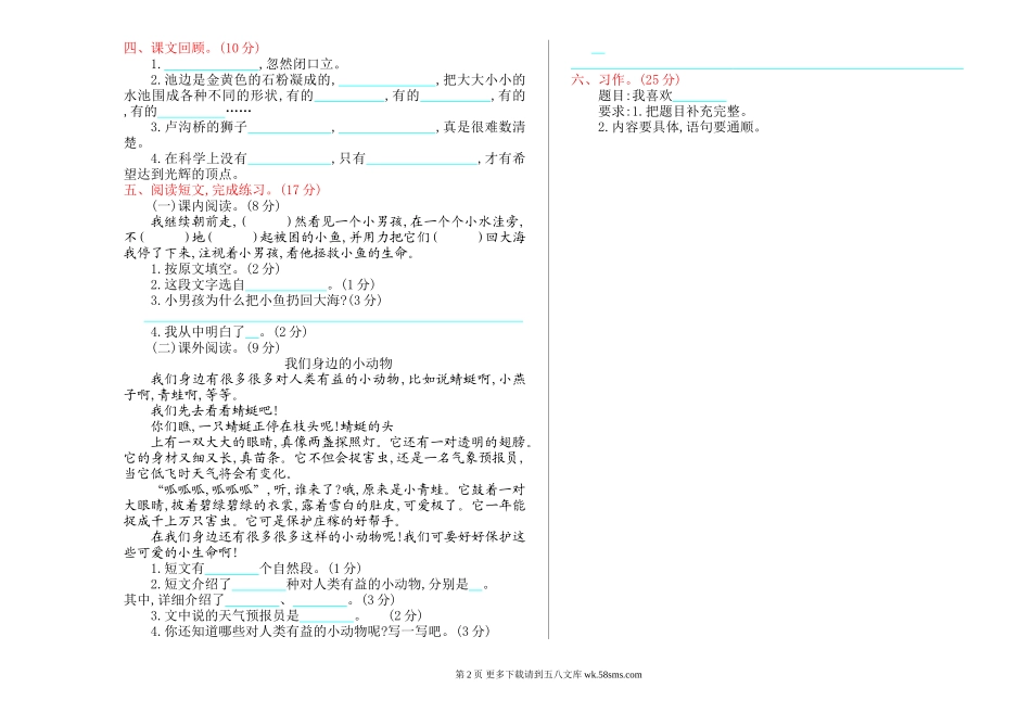 2016年鄂教版三年级语文上册期中测试卷及答案.doc_第2页