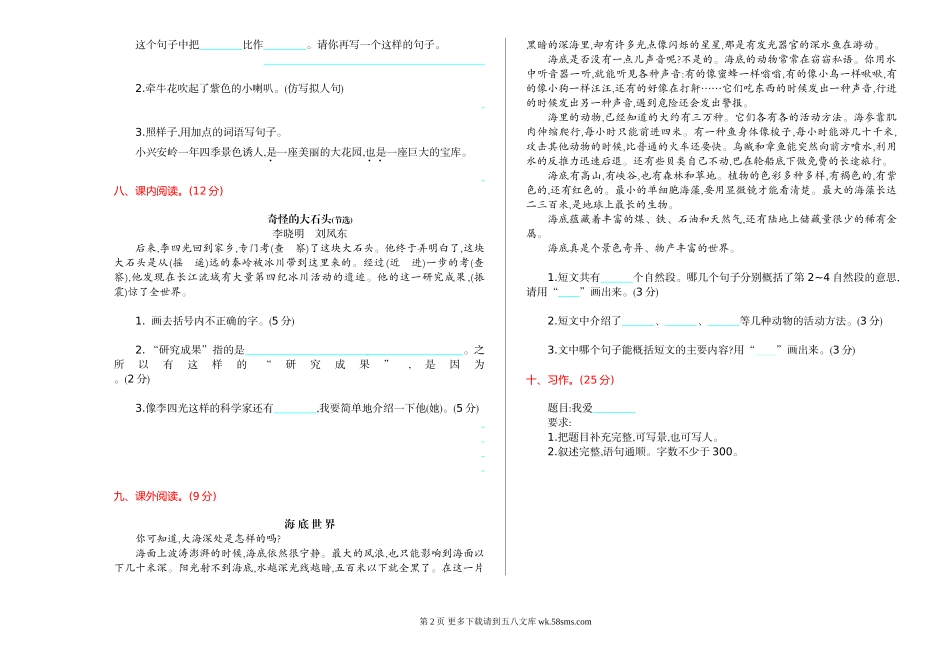 2016年鲁教版三年级语文上册期末测试卷及答案.doc_第2页