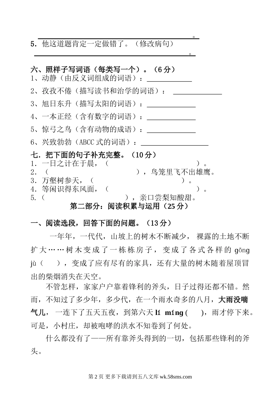 2017人教版三年级下册语文期中试卷.doc_第2页
