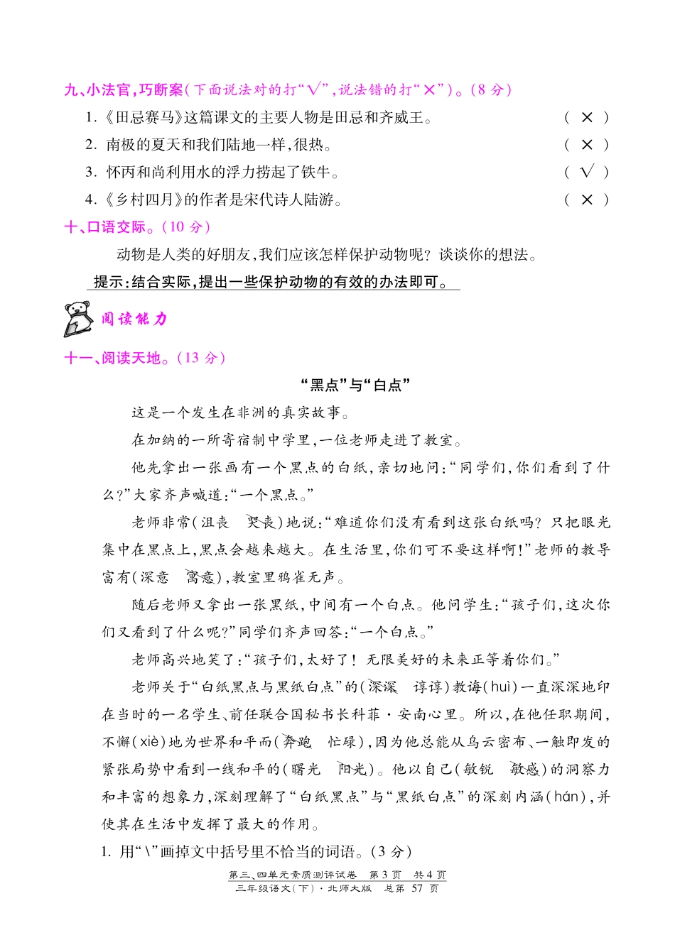 北师大版三年级语文下册第三、四单元测试卷含答案.pdf_第3页