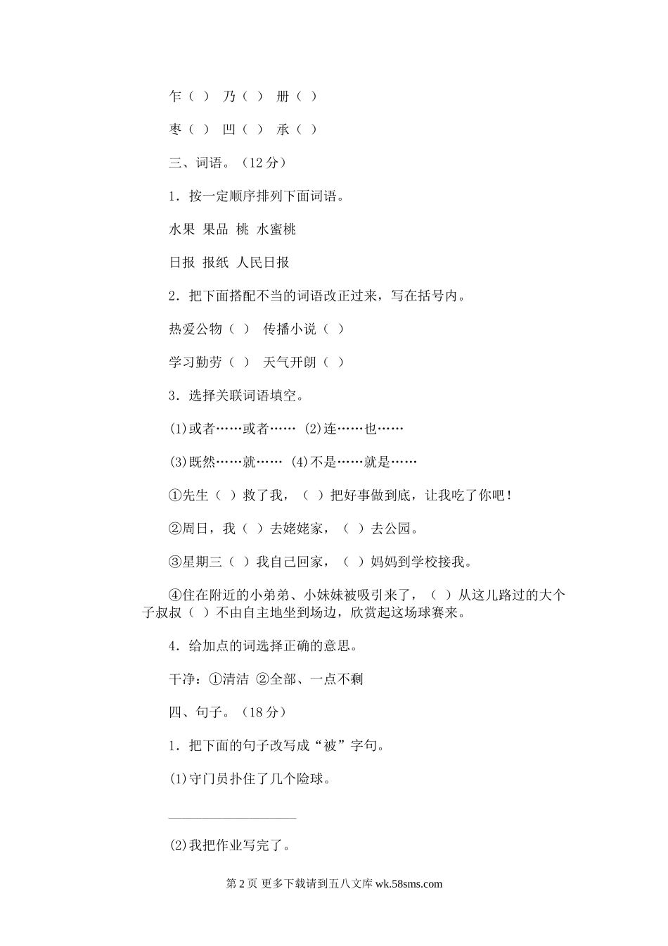 四年级语文小学语文第八册期末试卷(六).doc_第2页