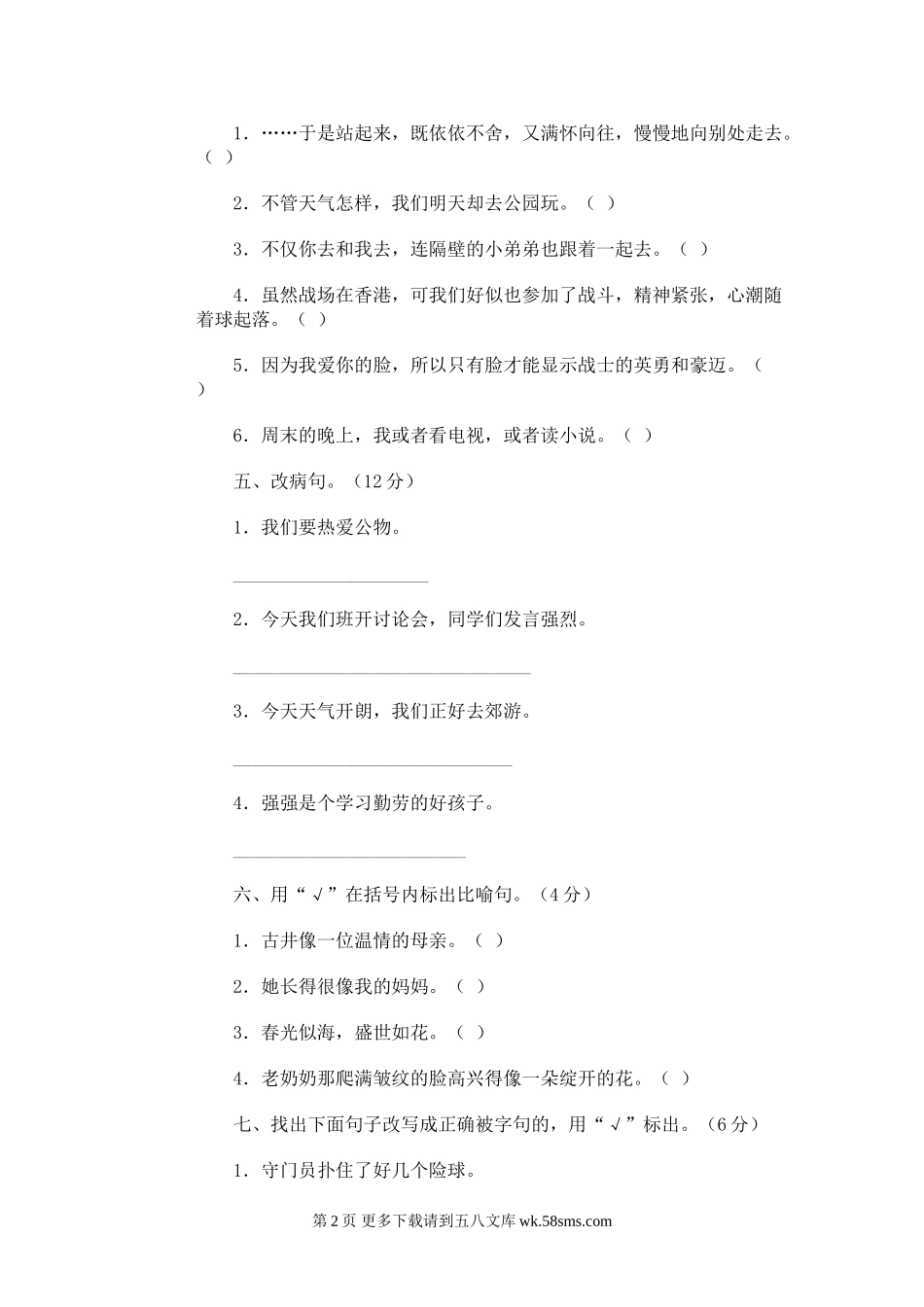 四年级语文小学语文第八册期中试卷 (一).doc_第2页