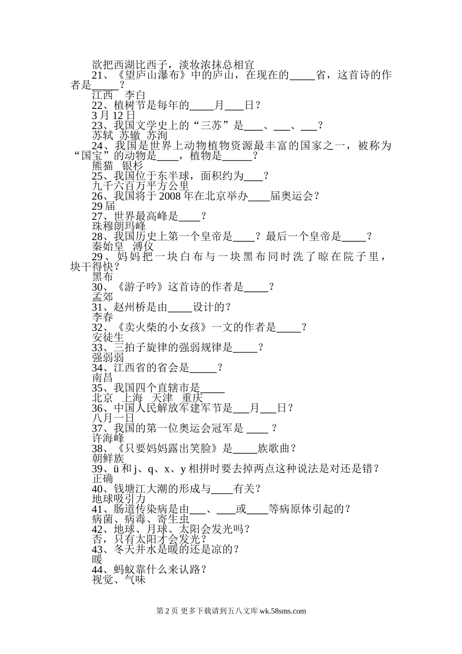四年级知识竞赛抢答题.doc_第2页