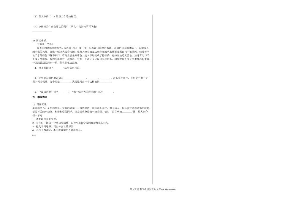常德市2019-2020学年三年级语文上册期末试卷.doc_第2页