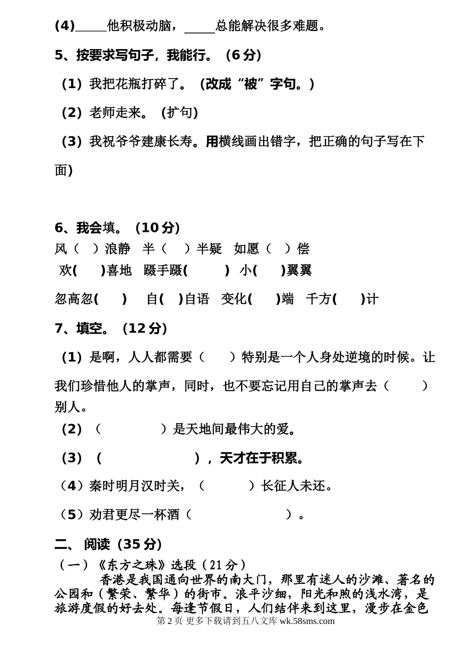第四小学上学期三年级语文质量检测试题.doc_第2页