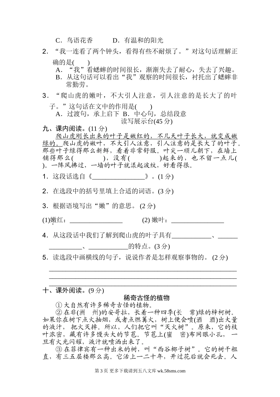 03《好卷》部编版四年级语文上册第三单元达标测试卷.doc_第3页