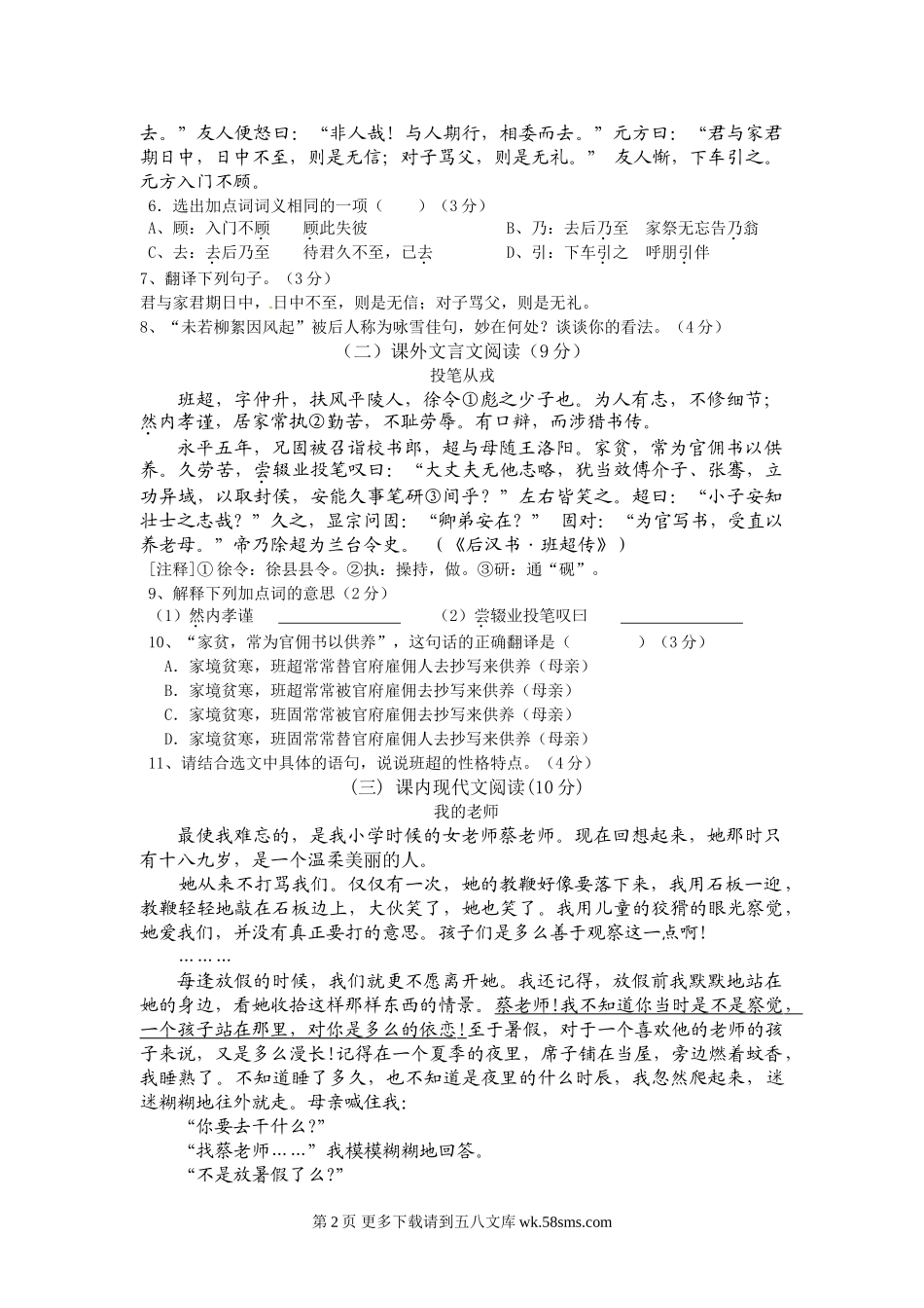 潮阳一中七年级上学期语文第一次月考试题及答案.doc_第2页