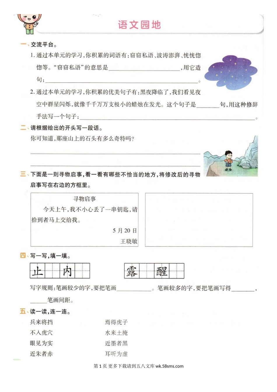 三年级下册《语文园地七》同步练习题.doc