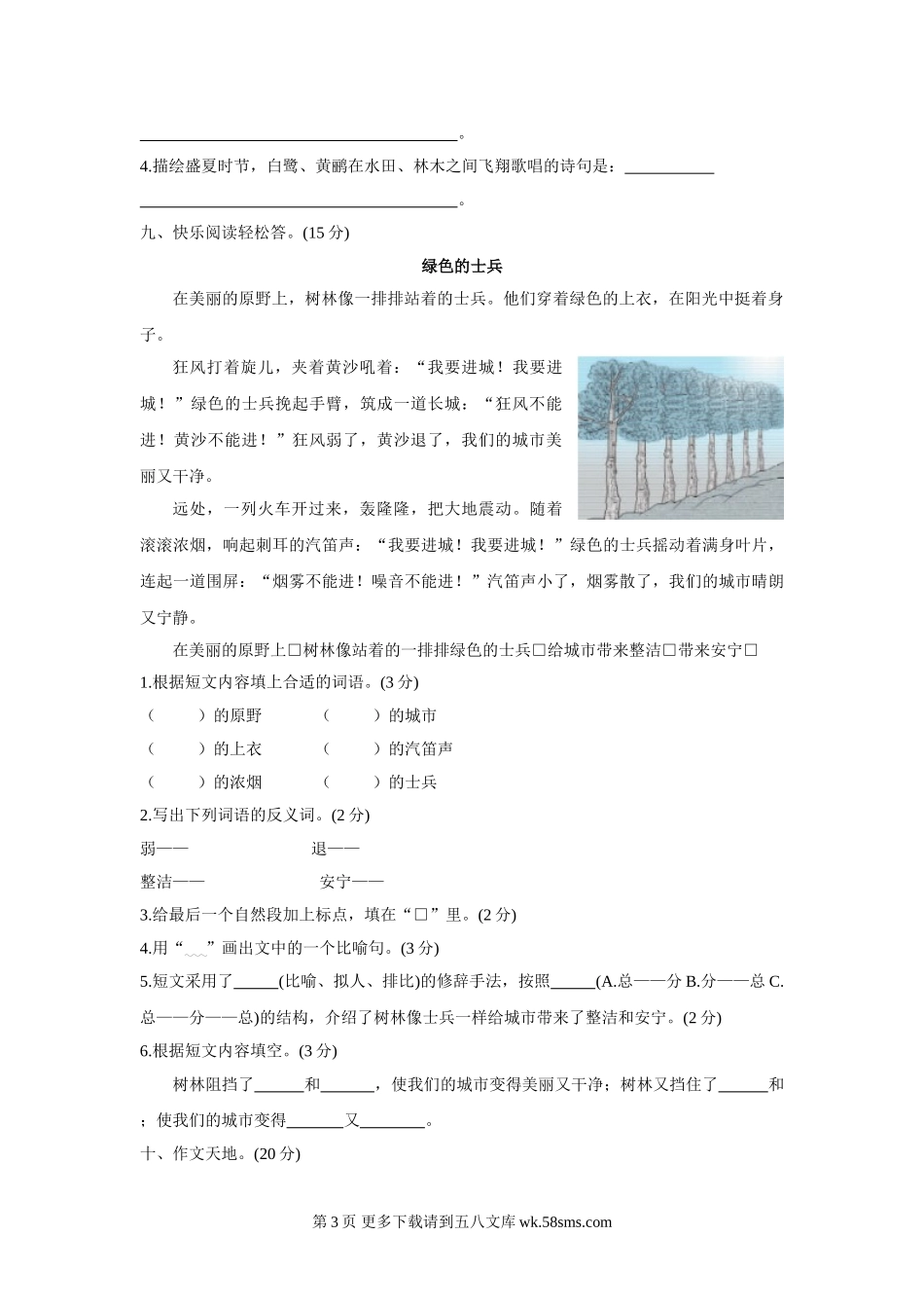 三年级下册语文第二单元测试卷及答案.doc_第3页