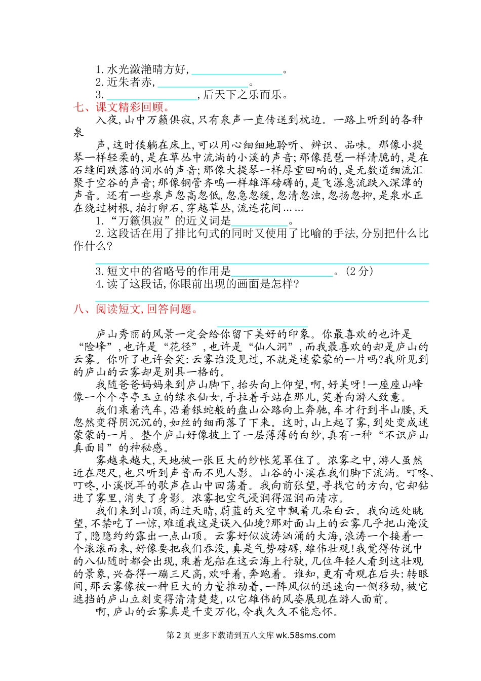 2016年鄂教版四年级语文上册第七单元提升练习题及答案.doc_第2页