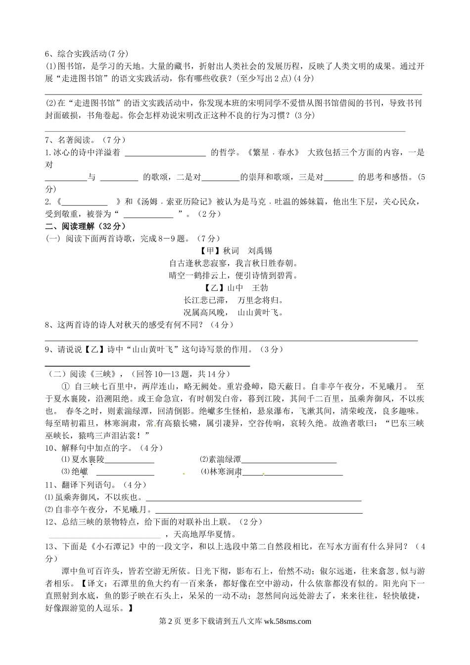 阜宁益林中学七年级上学期学情调研语文试题及答案.doc_第2页