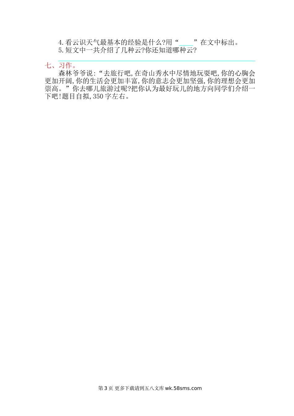 2016年冀教版四年级语文上册第五单元提升练习题及答案.doc_第3页