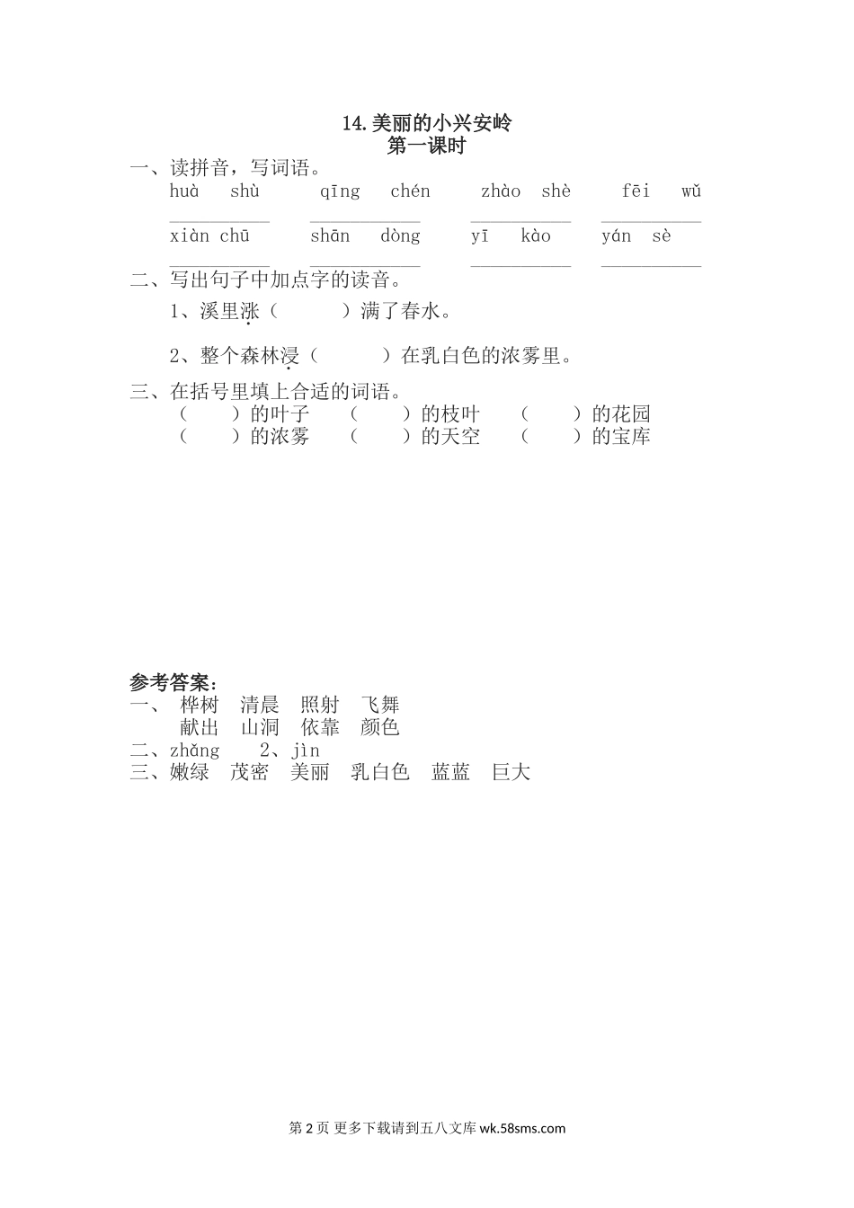 三年级语文14 美丽的小兴安岭.doc_第2页