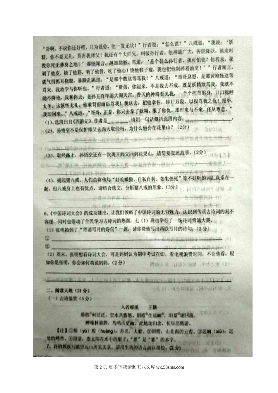 江苏省东台市2016-2017学年第二学期七年级语文期中试卷及答案.doc_第2页