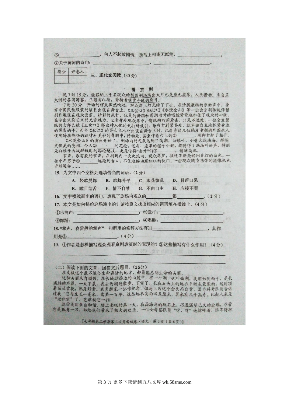 江西省第二学期七年级第三次月考语文试题及答案.doc_第3页