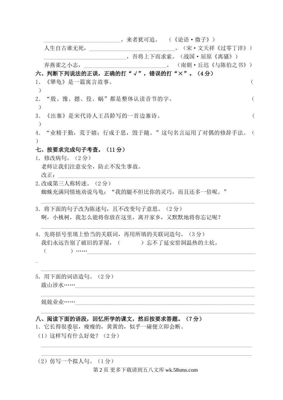 2013年小学六年级语文复习卷及答案2.doc_第2页