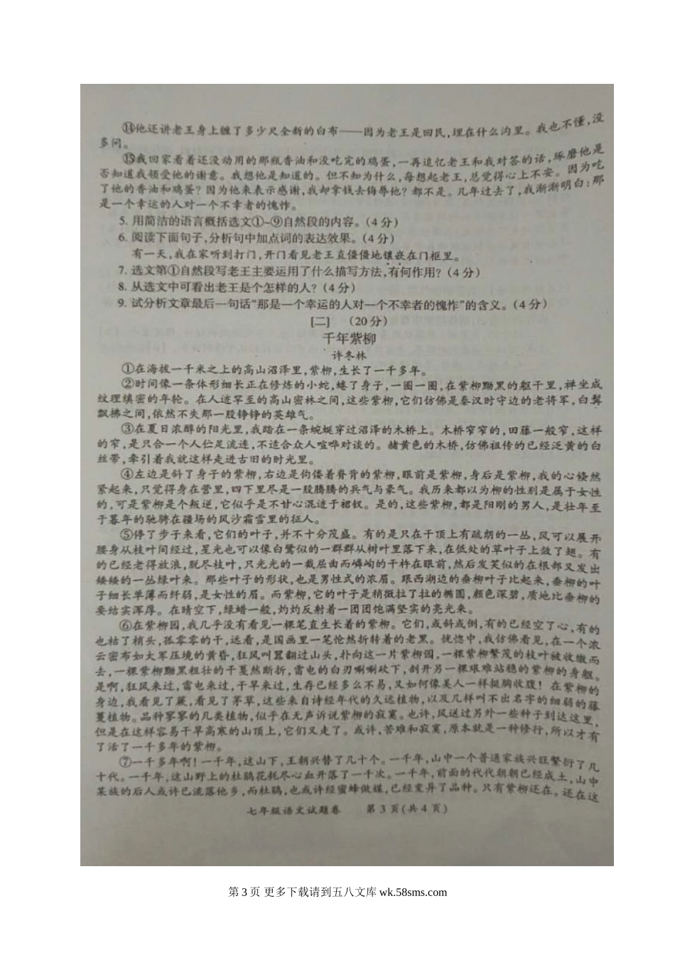 明光市2016-2017学年第二学期七年级语文期中试卷.doc_第3页