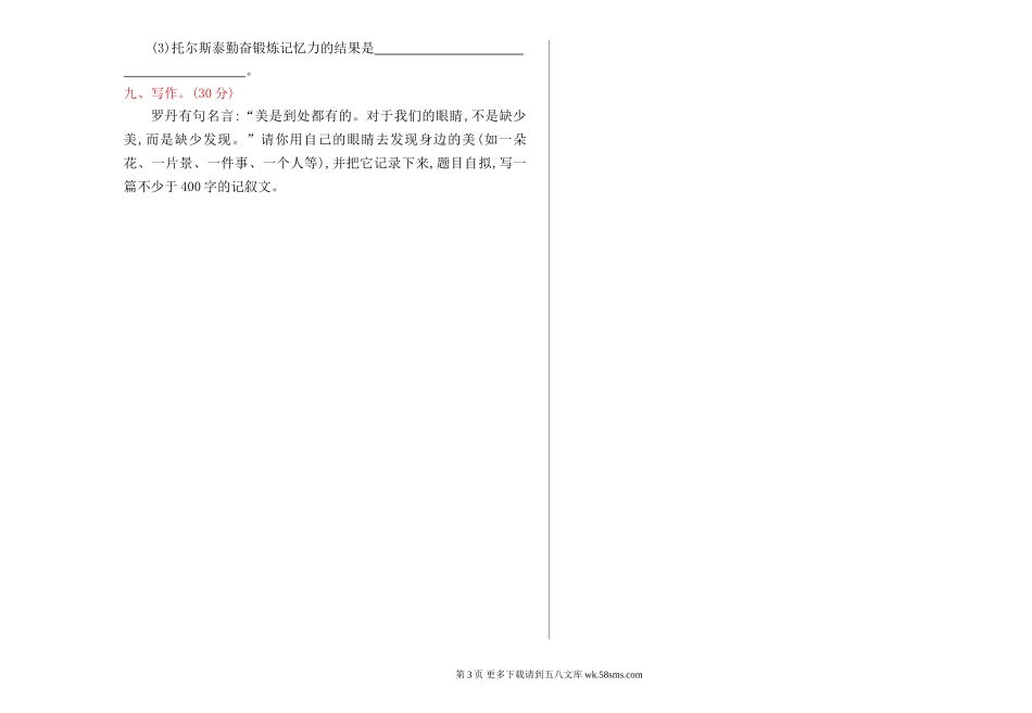 2016年六年级语文上册期中测试卷及答案【湘教版】.doc_第3页