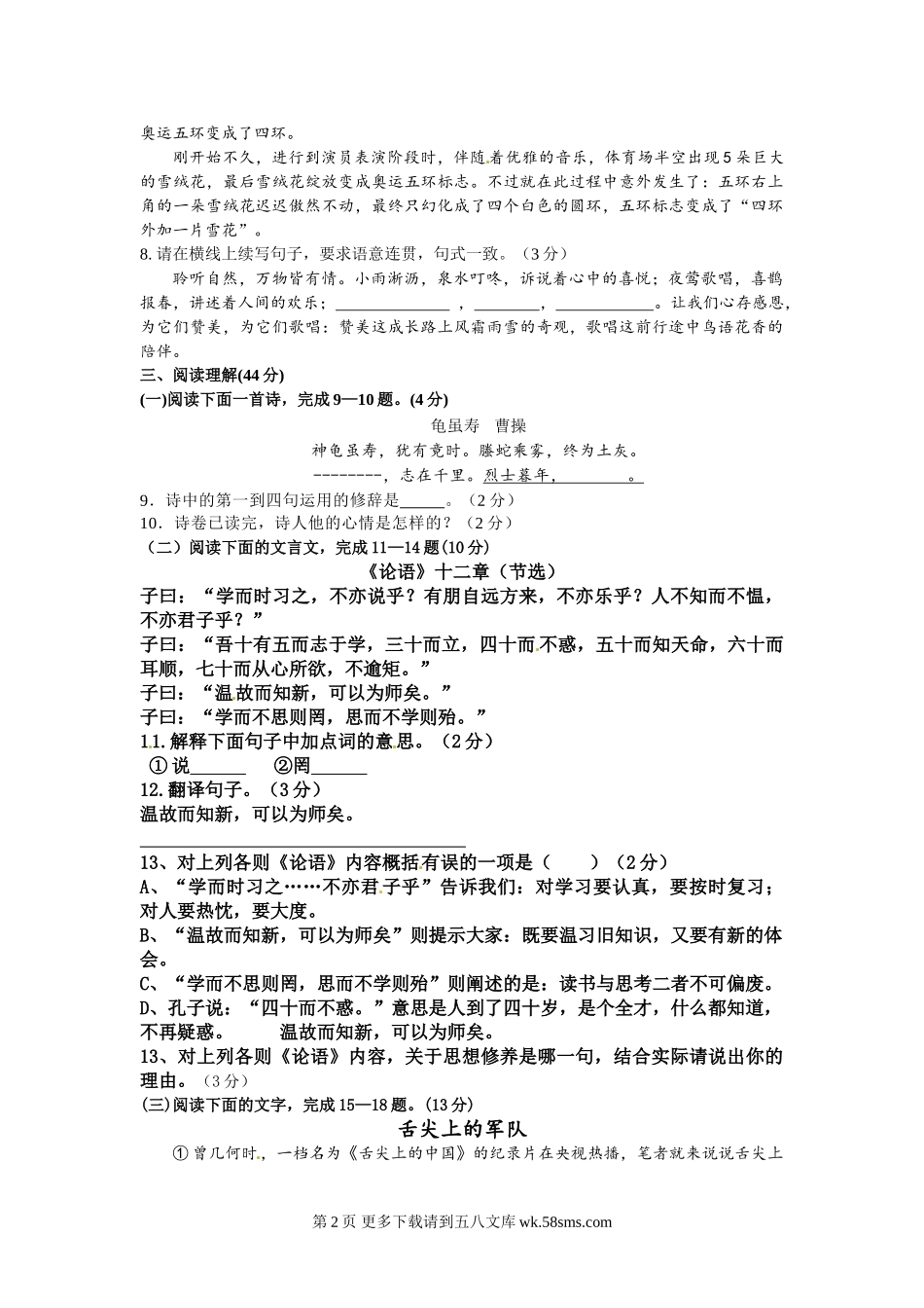 七年级10月语文月考试卷.doc_第2页