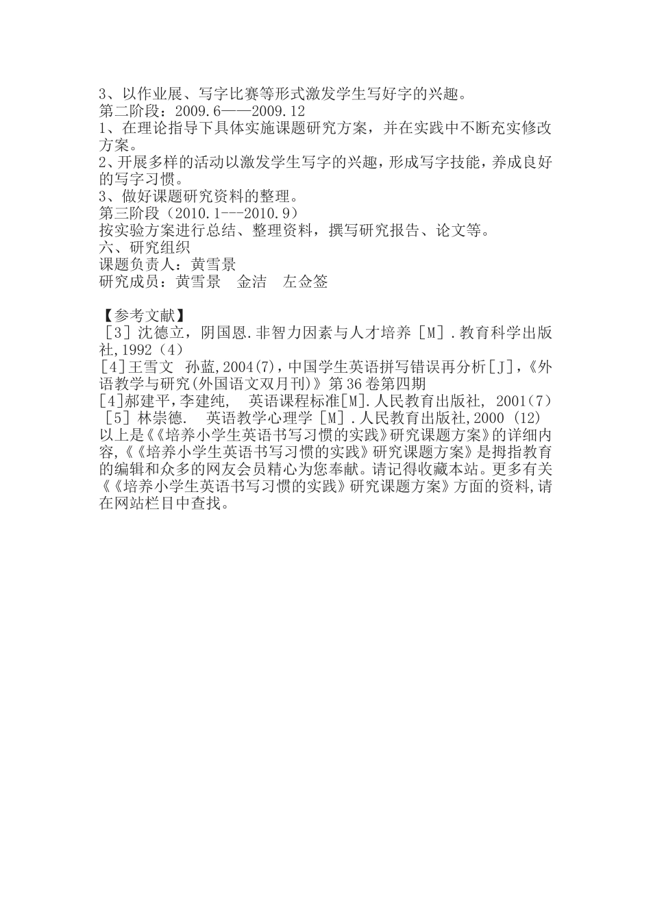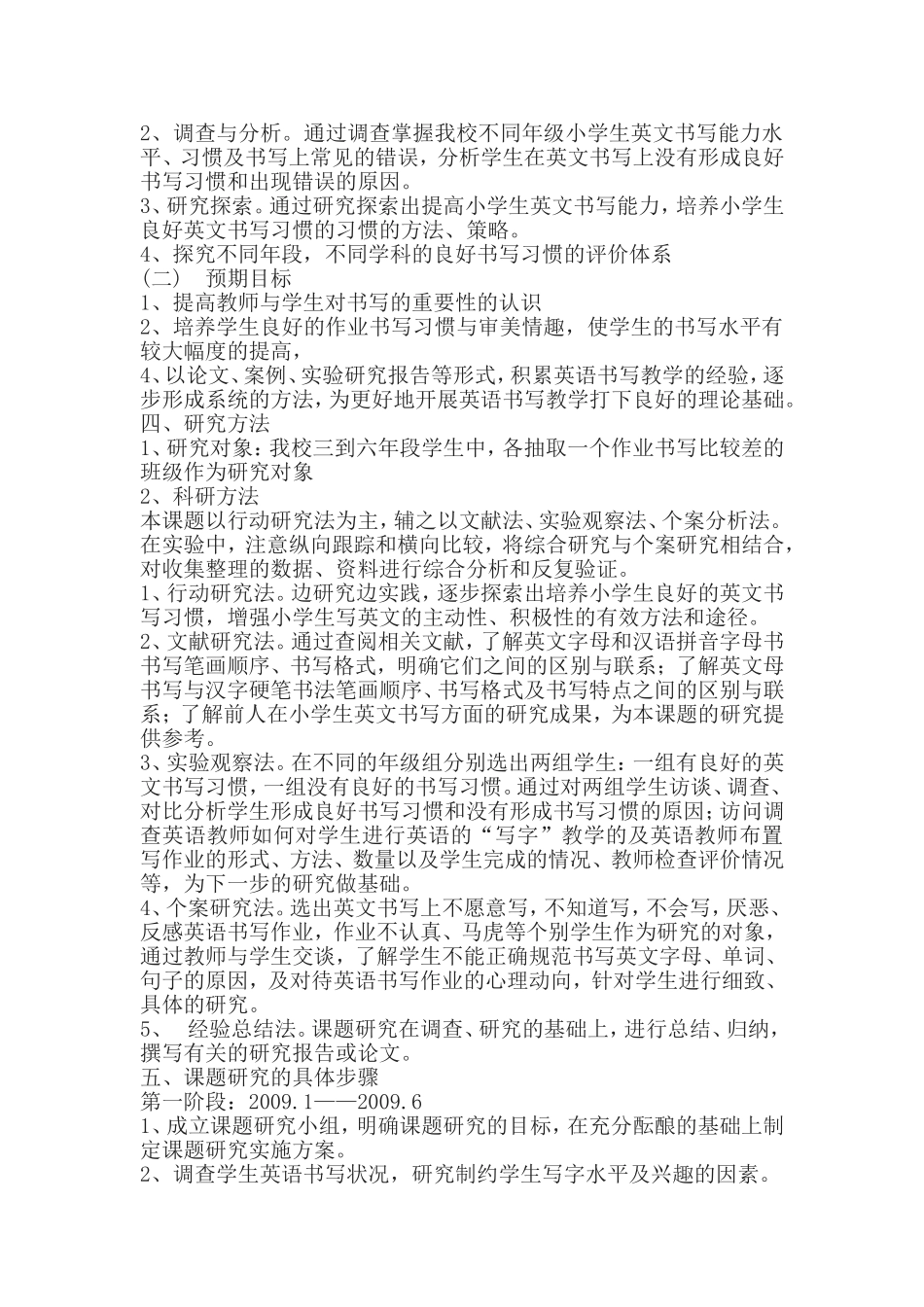 《培养小学生英语书写习惯的实践》研究课题方案.doc_第2页