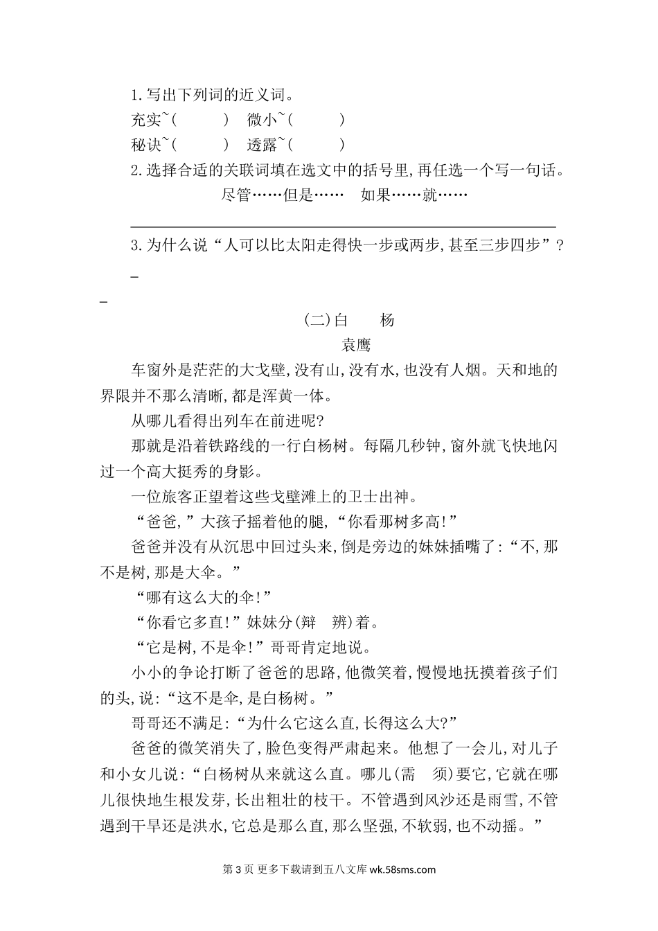 2016年湘教版五年级语文上册第二单元提升练习题及答案.doc_第3页