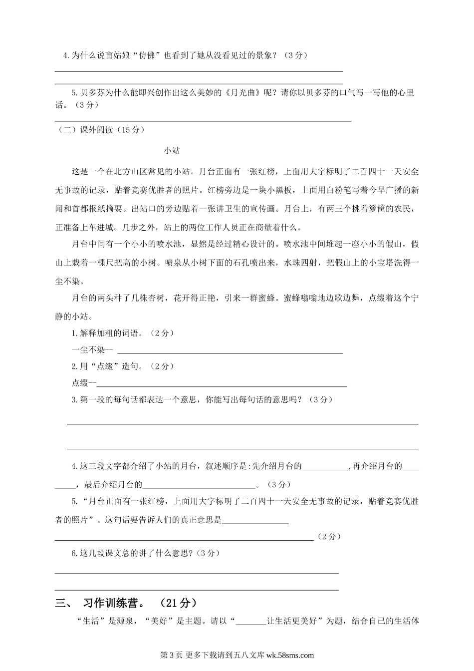 2020年六年级上册语文期末试题3部编版Word版本有答案.doc_第3页