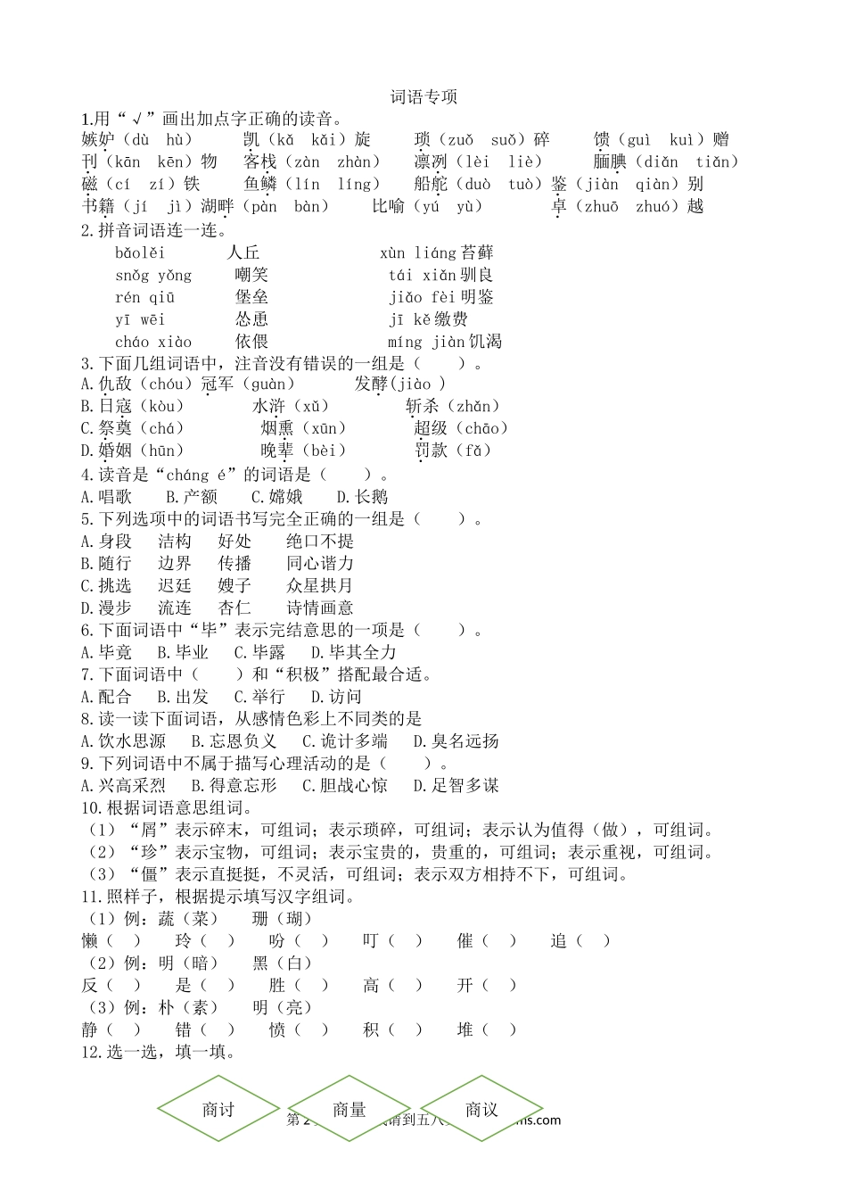 2019年部编版五年级语文上册词语专项复习题及答案.doc_第2页