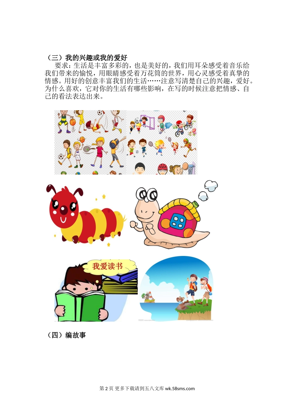 写作专项(一)想象文我变成了……(或自拟一个有趣的题目)要求:如果你有这样一个机会,把自己变成另一种东西,会发生什么呢?首先要确定自己的习作内容,内容要具体,语句要通顺,注意不要有错别字。(二)我喜...
