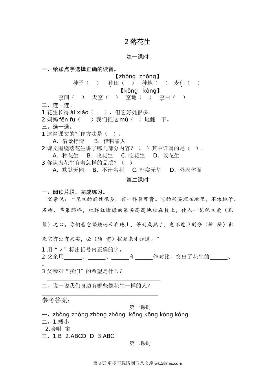 2021部编版五年级语文上册第一单元课堂练习题及答案.doc_第3页